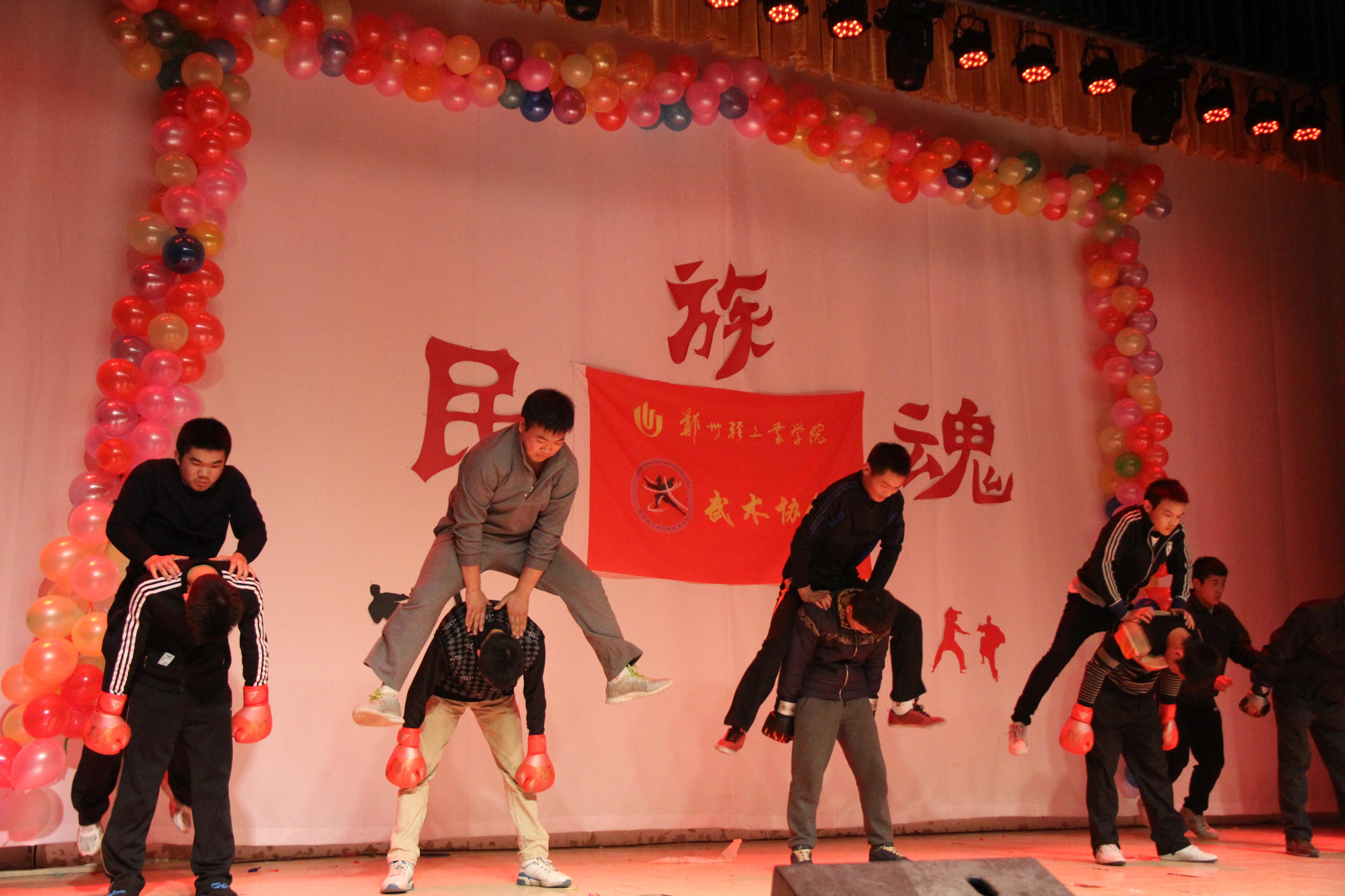 活动开始,以热情奔放的舞蹈表演开场,赢得场下一片叫好声。在主持人对本次活动进行简要介绍后,活动进入主题,由本校武术协会、郑州大学武术协会、郑州科技学院武术协会、河南牧业经济学院武术协会等,进行武术表演。表演主要以踢、打、摔、拿,四技为主要内容,套路和格斗为运动形式,军体拳、太极拳、组合拳、散打、跆拳道等精彩表演把武术四技中的动静结合刚柔快慢,上下左右,表现的淋漓尽致。接着,各种套路的舞刀、舞棍、舞剑,对辊、双截棍的表演,表演者英姿飒爽,精彩纷呈,把活动推向高潮,台下观众如痴如醉,掌声阵阵,现场气氛十分热烈。其中还有本校交谊舞协会及演讲与口才协会带来的精彩舞蹈与慷慨激昂的诗朗诵,令人惊叹。最后一场散打比赛十分激烈,现场观众热血沸腾,喝彩不断。最后由武术协会指导老师王忠政颁奖致词,主持人宣布活动圆满结束。