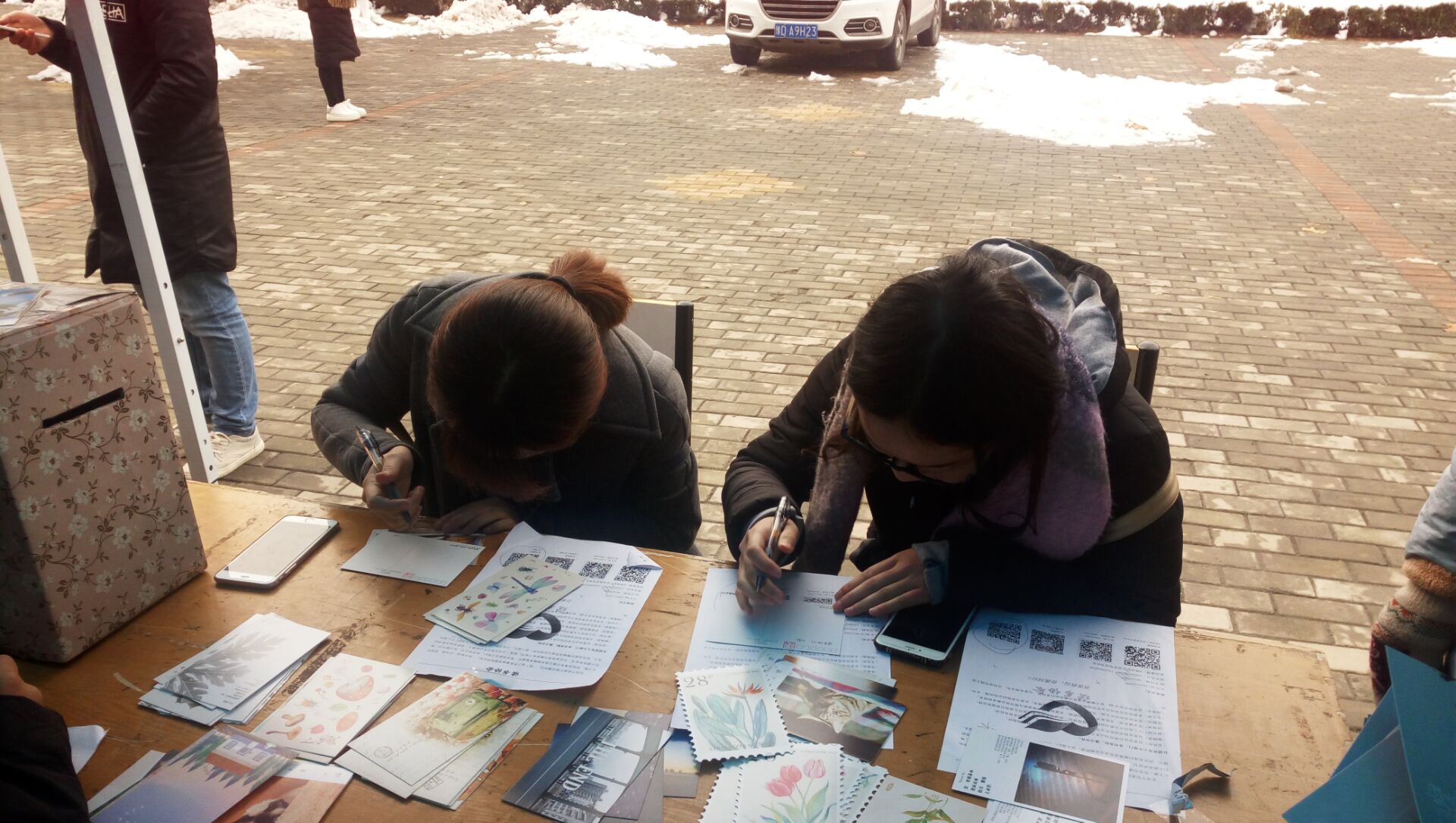 同学们认真写明信片