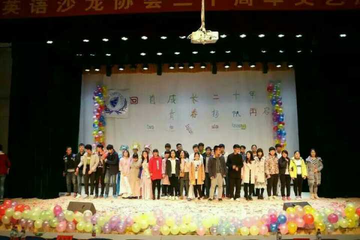 时光匆匆,转眼间,英语沙龙协会已走过了二十个春夏秋冬。11月20日晚,由大学生社团联合会主办,英语沙龙协会承办的20周年庆在三教楼208教室盛大举行。本次晚会邀请了英语沙龙协会上任主席团成员、东风校区英语沙龙协会会长、各社团会长等嘉宾。全校近500名同学观看了晚会。 此次晚会的节目内容形式多样,丰富多彩。开场曲《喜欢你》将一片欢庆融洽的气氛带入了现场,让同学们感到浓郁的欢乐气息;小品《非诚勿扰》、《监考老师》诙谐生动的表演引发了同学们的阵阵笑声;交谊舞等舞蹈表演美轮美奂,深受观众们的喜爱。其中,一组歌曲串烧将此次晚会推向了高潮,赢得了现场的一阵阵掌声,还有诸多节目也受到了同学们的一致好评。掌声和呼叫声此起彼伏,台上台下成了一片激情洋溢的海洋,晚会全程高潮迭起,热闹非凡。 英语沙龙协会以为大家英语学习提供平台为宗旨,本着认真、负责、团结、有爱、互助的理念为全校爱好英语的同学服务。二十年,对英语沙龙协会来说既是种激励,更是种鞭策。此次晚会彰显了英语沙龙协会悠久的历史及浓厚底蕴,进一步提升了英语沙龙协会在校园的影响力,有利于进一步宣传校园社团文化,构建良好的校园学习氛围,并为各协会及会员间的交流与合作构建桥梁,为英语沙龙协会成员展示自我风采提供了宝贵机会,充分调动了广大会员的活动积极性,翻开了协会发展的新篇章。