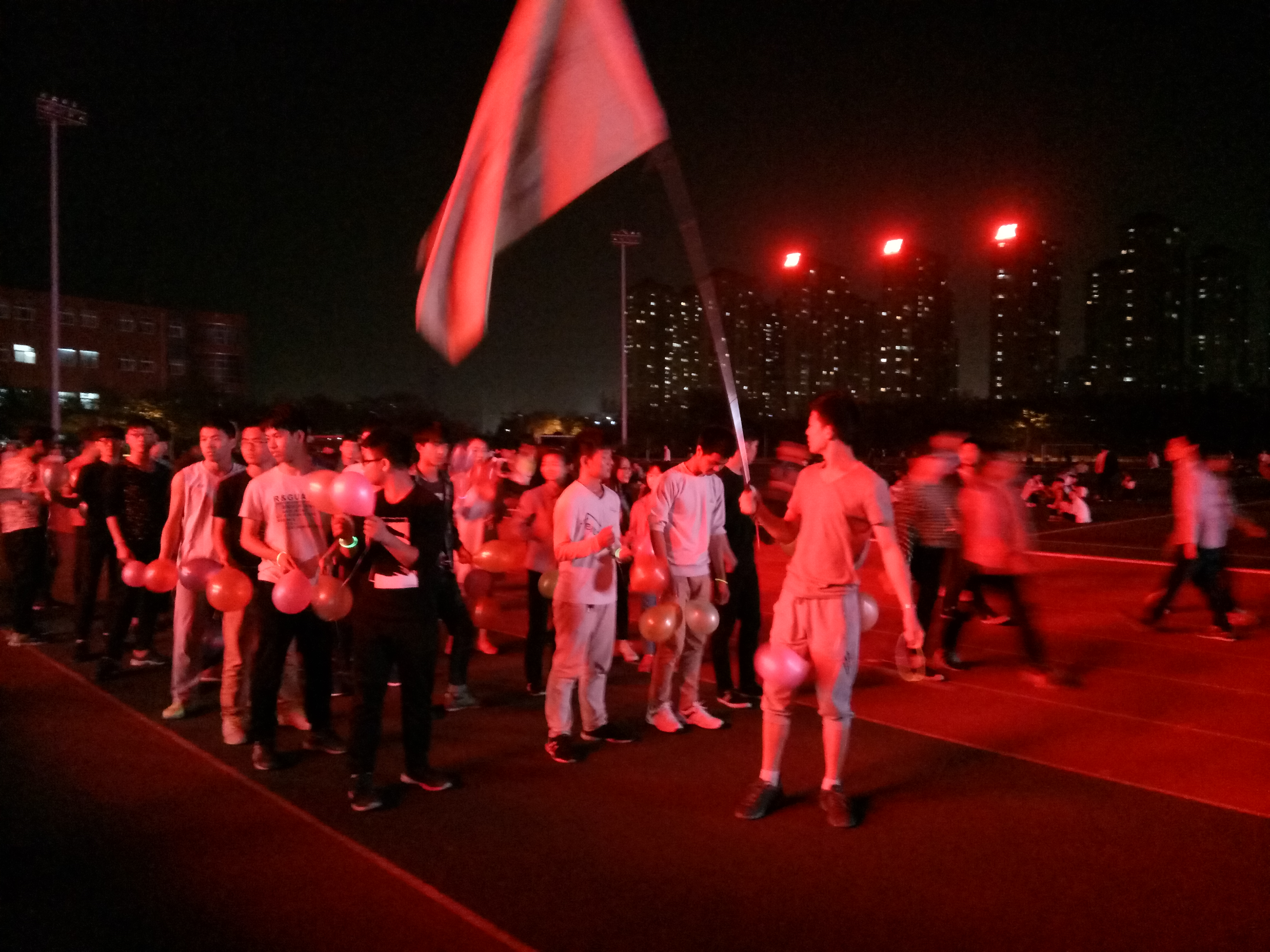 4月17日晚,由校团委主办,武术协会、Hello Runner跑团共同承办的星空夜跑活动在体育场正式开始。此次活动主要由武术协会会长林静、Hello Runner跑团会长马鑫负责,各干部以及干事担任各项职责。本次活动面向全校师生,众多同学积极参与到活动中来。 星空夜跑是一个在跑步的基础上加入了荧光、社团携手等元素的活动,这不仅丰富了跑步的内容,也大大增加了跑步的趣味性,对提高同学们的跑步积极性有很大的帮助。本次活动共持续两天,主要包括以下几个环节。首先是签到,活动当天各工作人员提前到场并签到。其次是在活动开始前,工作人员对参与者进行引导,确保大家到达正确地点,由工作人员组织列队。接下来是跑步环节,列好队后,由教练带领大家慢跑。在大家跑步期间,由武术协会网络部和跑团策划部的同学随时拍照并发布微博。在跑步结束后,大家纷纷在宣传条幅上签字留念。 盎然的春季即将结束,火热的夏季将要到来,此时的星空夜跑正好给了同学们一个契机,让同学们意识到是时候穿上轻便的运动服去锻炼了。本次活动意在体现大学生健康、阳光的精神面貌,丰富同学们的课余生活,提高同学们的身体素质,强健体魄,为同学们的长远发展提供坚实的健康基础。还在等什么?出发吧,大学生!
