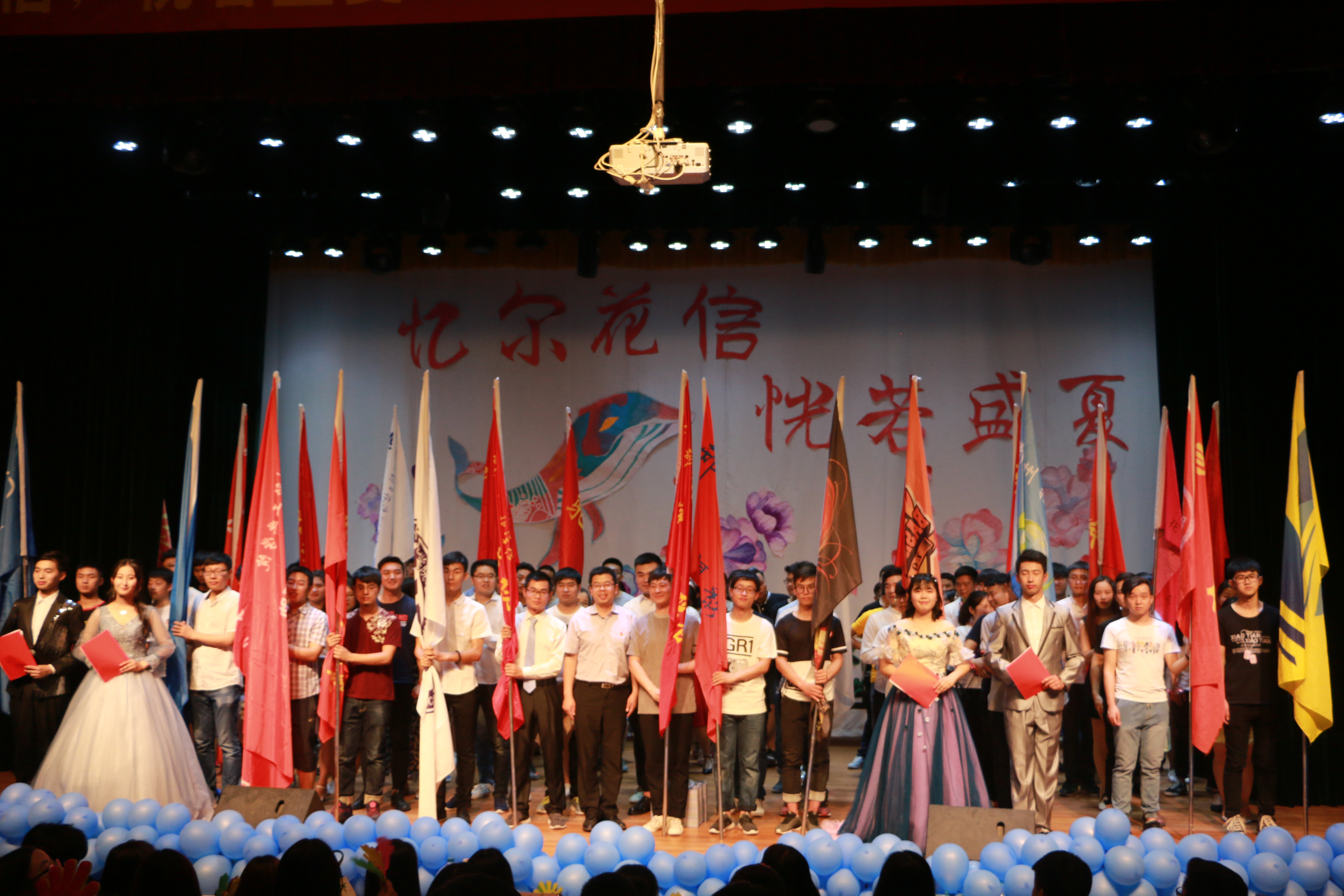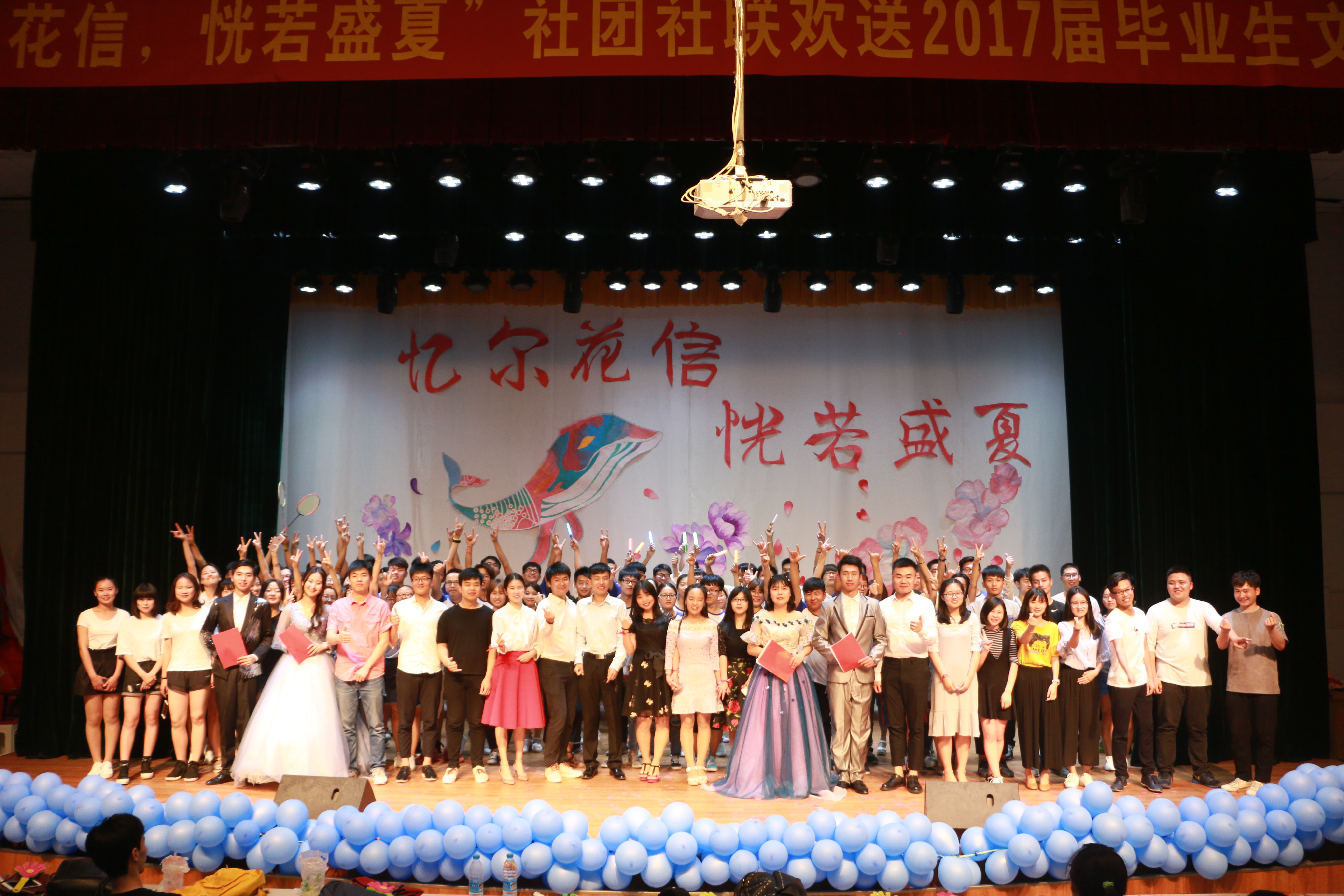 5月21日晚上,由校团委主办、大学生社团联合会及各社团承办的以“忆尔花信,恍若盛夏”为主题的社团社联欢送2017届毕业生文艺汇演在郑州轻工业学院科学校区三教楼208室隆重举办。本次活动有幸请到校团委书记葛勋莅临观看,各学生组织各社团代表,社联全体成员及东风校区众多学生观看了此次文艺汇演。截止发稿,微信消息发送量已达2600余条,5000余人通过微博直播观看了本次晚会,反响强烈。 5月21日晚6点,经过社团社联成员一天紧张而又精心的准备后,汇演开始时间临近。13级社团社联毕业生陆续来到了三教楼外,在签名墙上留下自己的名字。208的大屏幕上滚动播放着本校及外校多个社团组织精心为学长学姐准备的祝福视频。一时间,“工作顺利”、“身体健康”、“常回来看看”、“社团是你们永远的家”等这些发自肺腑的话温暖着13级社团社联人…… 晚6点30分,在雄浑的音乐声中,13级社团社联毕业生代表在旗手的引领下,缓缓踏上鲜艳的红毯,穿过会场,登上舞台。现场座无虚席,掌声,欢呼声此起彼伏。林立的旗帜旁,他们互相诉说着留恋与不舍之情。大学生社团联合会第十七届副主席许颖颖、电子科技协会13级成员杨南壕分别作为毕业生代表发言,表达了对这四年时间内社团社联工作的感慨与怀念,惋惜着时光匆匆并表示对今后的社团社联工作充满期望。随后各社团代表为毕业生赠送了精心准备的礼物,校团委书记葛勋上台与毕业生们合影留念,一时间文艺汇演现场弥漫着温馨的气息。 7时,文艺汇演在充满青春活力的开场舞中正式拉开帷幕,带动了所有人的热情,一幕幕精彩绝伦的表演既展示出了社团人的精神风貌,也展现了对即将毕业的大四毕业生们的依依惜别之情和轻院学生积极昂扬的青春气息。社联组织部的话剧《人生》以一部没有台词的哑剧演绎了两个人完整的一生,让人动容落泪。演讲与口才协会的朗诵《我们毕业了》,那感情充沛的朗诵声带大家重温了大学四年的点点滴滴;武术协会的表演《承仁》既展现了当代大学生蓬勃向上的朝气,又弘扬了博大精深的中华武术,更是对即将踏入征程的毕业生的满满的祝福。各个社团通过节目表演向2013级毕业生展示自己社团的精华,社联现任主席团和团工委成员以及青年志愿者协会也准备了精彩的手语节目《不说再见》献给所有的毕业生。除了这些,精彩的舞蹈与歌声也引爆了全场气氛。社联办公室的《追梦赤子心》、英语沙龙协会的歌曲《closer》、漫画协会的宅舞《clac》、交谊舞协会的《匆匆那年》、汉服社及社联新闻部联袂出演的《惊鸿舞》等众多美妙的歌曲与优雅的舞蹈,让毕业生们在禁不住连连喝彩的同时也感慨青春是如此的绚丽。羽毛球协会以欢送毕业生汇演为主题的小品《羽你》,在略带夸张的表演中,活灵活现的展示了大学生活的细节,勾起了毕业生无限回想,赢得了台下的阵阵爆笑和欢呼。当晚的微博墙上祝福与感慨不断闪现,通过新媒体的使用,只言片语之中便能表达出浓浓的留恋与惜别之情;两次微信抽奖也将文艺汇演氛围带到一个又一个高潮。文艺汇演在全体演员的歌声郑轻版《成都》中落下帷幕,大家纷纷上台与毕业生们拍照合影,想留住这最美的瞬间。 观看了本次文艺汇演的每一位毕业生都深深地体会到了这四年里所有的风花雪月,风,是那年初入校园的瑟瑟秋风,花,是一起成长时的的笑魇如花,雪,是每一个社团社联人都有的傲霜斗雪,月,是这四年的峥嵘岁月!通过文艺汇演,广大社团成员用他们的真情和才艺诠释了我校社团多才多艺、自信自强的精神风貌和锐意创新、拥抱未来的不懈追求,更促进了广大毕业生之间的相互交流,展现我校学生进取向上、青春昂扬的精神风貌,同时也加深了毕业生们对母校的热爱。衷心祝愿我校社团工作能承前启后、继往开来,衷心祝愿2013级全体毕业生一路顺风、前程似锦!