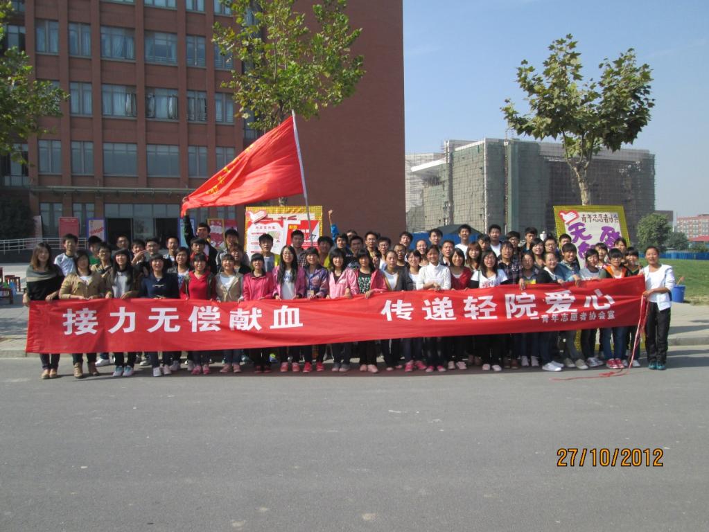 由校团委主办,青年志愿者协会与红十字血液中心联合举办的无偿献血活动于2012年10月27日在郑州轻工业学院科学校区电教楼前如期进行。