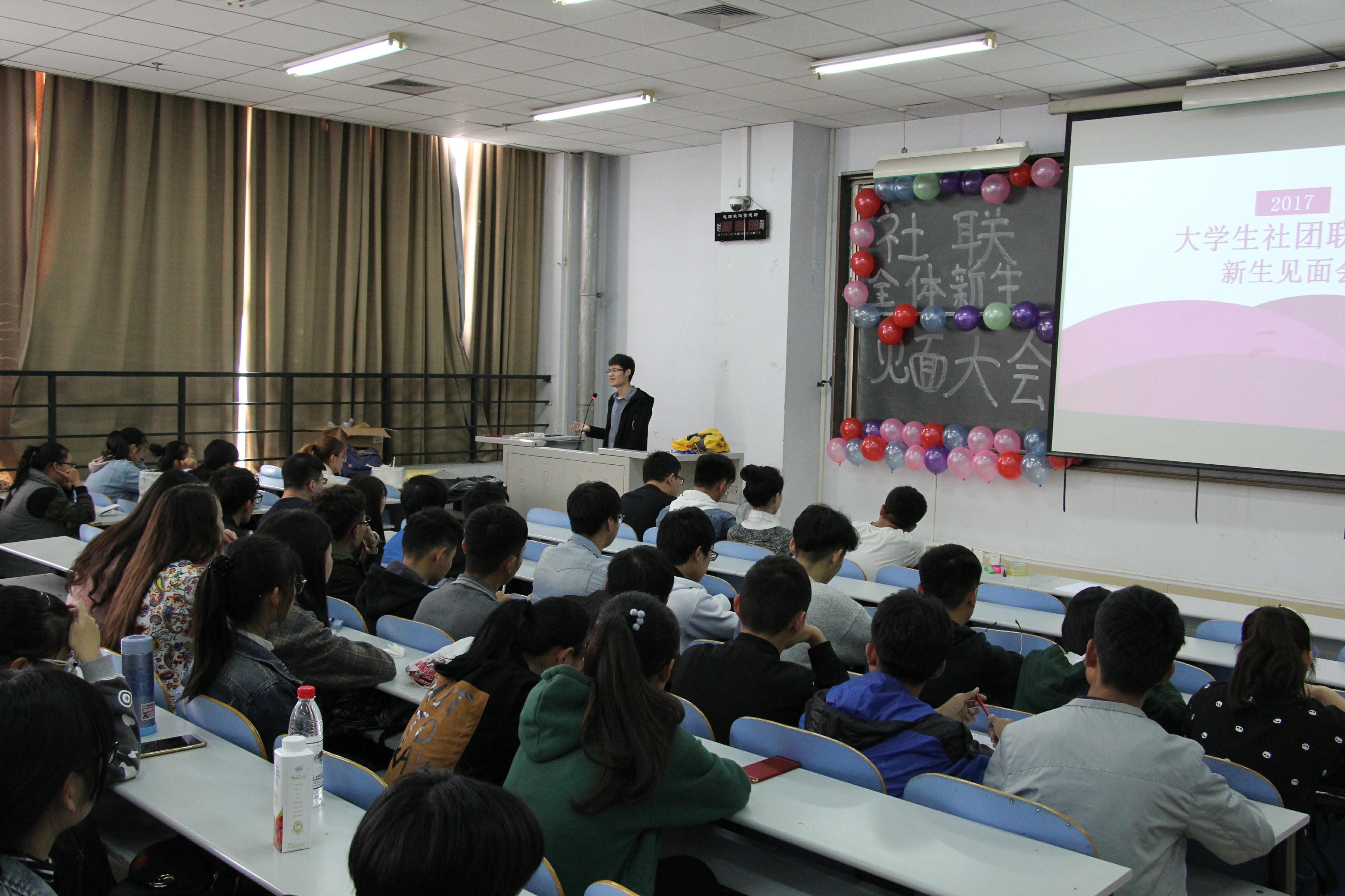 为了让新生更全面,更细致地了解大学生社团联合会以及各个部门的分管工作,更快地融入到社联这个大家庭中,10月12日,大学生社团联合会在教三204成功举办11级新生见面会。出席嘉宾有第十八届团工委书记豆景坤和第十八届副秘书长李楠。参与人员为社联全体成员。 中午1点左右,社联各部门成员陆续到达现场,组织部负责签到工作。1点30左右,大会正式开始。首先,大会由第十八届团工委书记豆景坤上台讲话,先对17级新生的到来表示热烈的欢迎,然后结合自己在社联三年来的工作经验向17级新生做了简单的描述,通过简短的话语,17级新生对未来在社联的工作有了一个大致的规划和目标。接着,又为17级成员陈述说明了社联的主要职能、工作理念以及社联内部组织架构。紧接着,为了让新生更好地投入到接下来的部门工作,各个部门负责人为17级新生讲解各个部门的职能以及责任。在部门介绍的过程中,又穿插了一个了令人期待已久的游戏环节,游戏名为“萝卜蹲”。新生们都积极地参与到游戏中去,现场氛围十分活跃,通过游戏使17级成员们感受到社联温馨的氛围。最后,由新媒体副主任王慧洁带领全体成员进行宣誓。全体成员上台合影,此次大会圆满结束。 这次新生见面会不仅仅让新生更加了解大学生社团联合会,还促进了新生间的交流沟通,向“社联一家亲”这个目标更近了一步,有利于社联内部成员之间的感情交流,同时使17级新生们对社联有了更深入的了解,以便于今后工作学习的顺利进行,对新生们更好地了解社联,更快地融入社联起到一定的促进作用。