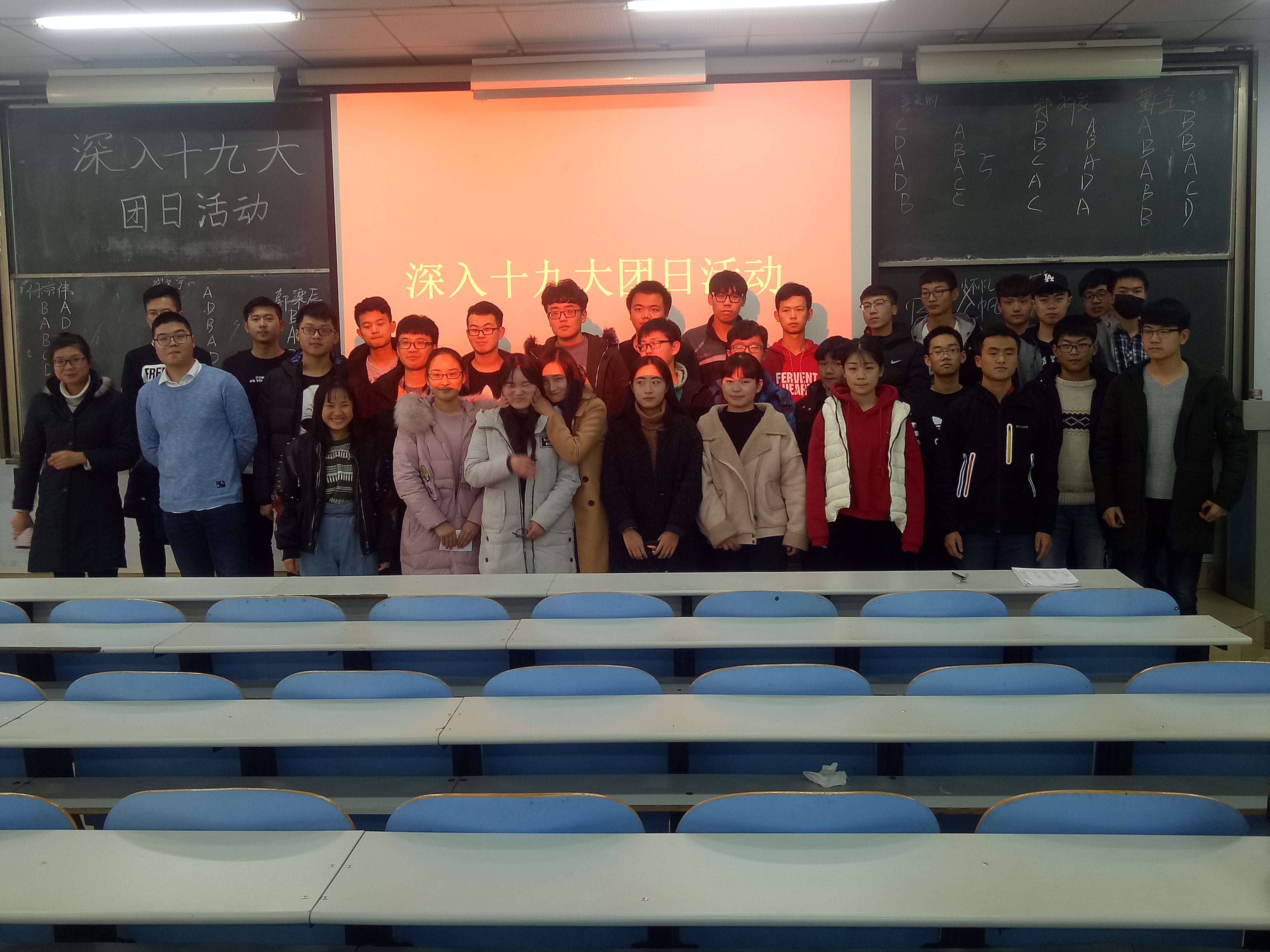 为了深入的学习十九大精神,加强同学对十九大精神的进一步理解,郑州轻工业学院羽毛球协会联合绘音社、轮滑社、营销协会、乒乓球协会于12月21日下午14:30,在教三楼104举办了关于学习十九大精神的团日活动。 为了举办好本次团日活动,五个协会的会长书记提前到达活动地点,布置好场地,做好准备工作,迎接各协会人员的到达。观众陆续到来之后,本次活动终于拉开了序幕。主持人介绍了本次团日活动的来宾,后来开始播放十九大精神视频,这段十九大视频使大家感受到了十九大精神的魅力。而接下来各协会会长书记的发言更是将本次活动拉向了一个高潮,他们充满激情的发言,并对大家表达了他们对十九大精神的理解,同时也让在场观众更深刻认识到了十九大精神。活动进行的很快,来到了让在场人员激动的游戏环节。游戏环节中,大家积极参加,在答题时,在场观众与参赛者积极配合,把本次活动又一次推向了高潮。欢乐的时光总是很短,活动到了结束的时刻,在合影结束后,本次团日活动圆满结束了。 本次团日活动的顺利开展,不仅让观众们进一步学习到了十九大精神,同时也加强了羽协与其他协会的合作,为今后活动的开展打下了良好的基础。最后,衷心祝愿我校的羽毛球运动能够蓬勃发展,羽协能够越办越好!