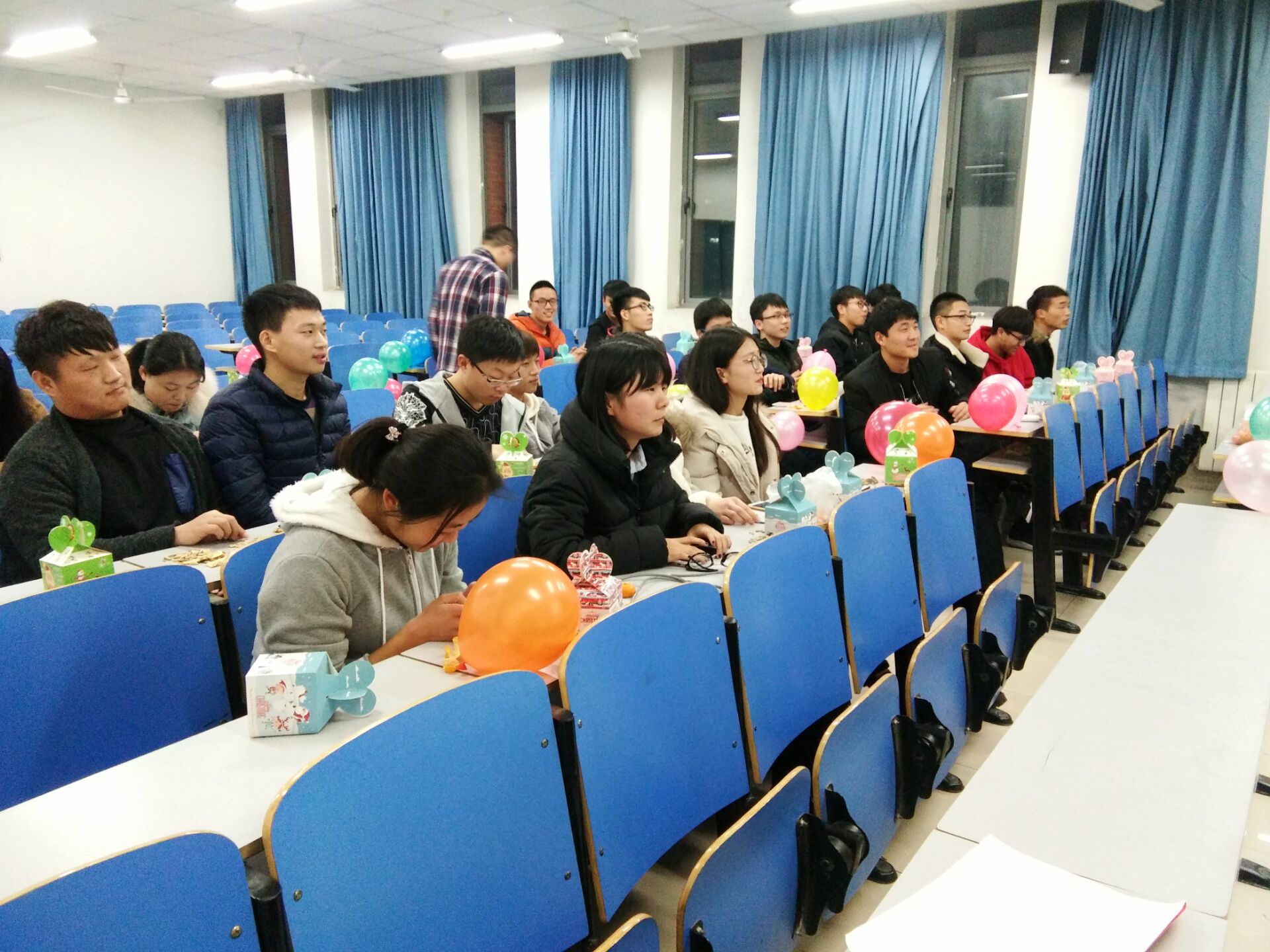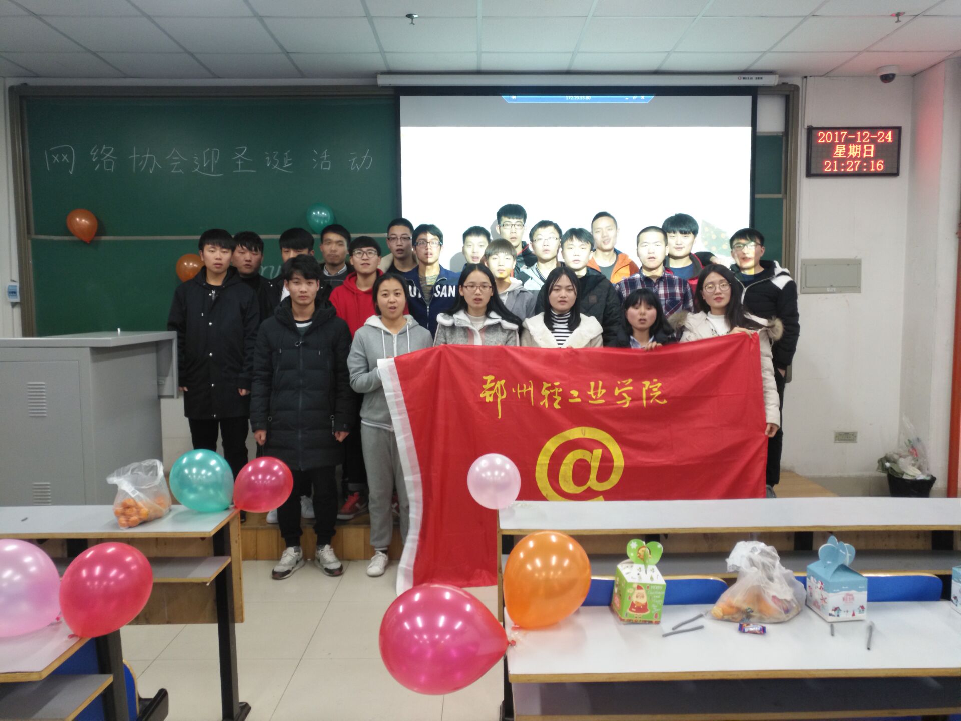 2017年12月24日晚,由郑州轻工业学院网络协会承办的”迎圣诞活动”在二教楼708室顺利举行。网络协会理事长姚松茂,支书王平原,技术部副部长田昊、侯泽翔,外联部副部长曹天瑞,组织部副部长黄甜,宣传部副部长杜浩楠,秘书部副部长徐明慧与协会会员参于了这次活动。此次活动由秘书部副部长徐明慧和技术部副部长侯泽翔主持。 本次活动以主持人徐明慧的讲话开场,首先祝贺大家圣诞快乐,并对参与本次活动的同学表示感谢。接下来主持人请理事长给我们讲解和演示水晶头的制作过程。会员们都很仔细地聆听和询问,然后各副部分别带着自己的组员进行操练。每组一个压线钳,每人一节网线、一个水晶头,按照特定的橙白橙绿白蓝蓝白绿棕白棕的排列顺序插入水晶头,最后用压线钳固定,即制作完成。水晶头制作完成后,支书和外联部副部长给大家发平安果、金桔、瓜子、糖等小零食,进入游戏互动环节。游戏活动以ppt形式隐藏在圣诞图片背后,被抽中的幸运观众进行互动和活动,有绕口令,真心话,大冒险,扭一扭,正话反说,传气球等。会员们积极参加活动,可口的零食、搞笑的小节目,大家玩得十分欢快,满场笑声。最后,成员们一起拍照留念。