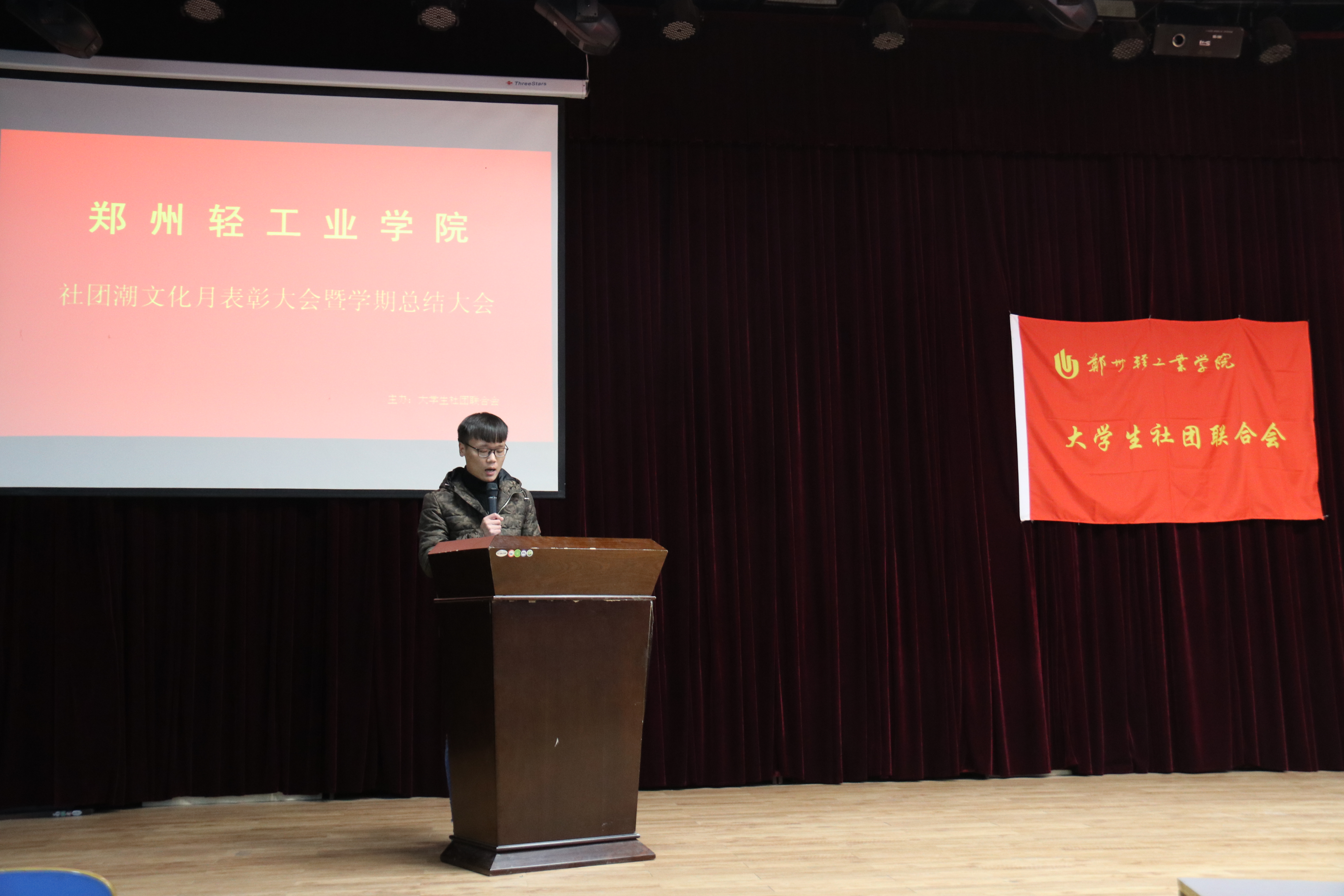 为进一步促进学生社团“规模化、精品化、特色化”建设,促进学生社团健康发展、举办更多有意义的精品活动。12月28日中午,由大学生社团联合会举办的“2017-2018学年上学期社团潮表彰暨总结大会”在科学校区大学生活动中心208室举行。出席本次会议的嘉宾有:校团委副书记景志勇老师、材料与化学工程学院学生会主席林静、政法学院学生会主席刘毅华以及大学生社团联合会主席团。本次大会由大学生社团联合会副秘书长叶铭主持。 大会开始之前,首先播放社团潮视频,展示各个社团的精彩瞬间。12:20,主持人上台宣布大会开始。大会进行第一项,大学生社团联合会常务副书记袁正做期末总结,他的讲话总结了本学期来各个社团的优秀活动,表达了对下一学年社团发展的美好期许。大会第二项:校团委副书记景志勇老师上台发表讲话,他提出社团活动应该高标准严要求的去开展,丰富在校学生第二课堂,展现轻院学子风采。大会第三项:颁奖环节。主持人宣布奖项设置和评选标准。这次表彰共分为四个奖项:最佳宣传奖、最具影响力奖、最佳创新活动奖、最佳合作奖。评选表准也是根据不同的奖项,设置相对应的标准。在播放各个社团的活动视频中,台下的同学们认真观看,并纷纷表示赞叹。颁奖间隙,绘音社、青年志愿者协会还为我们带来了精彩的配音和手语表演,赢得了同学们的阵阵掌声。获得最佳宣传奖的是:读书协会明信片诉情思活动,营销协会营销十五周年庆晚会,青年志愿者协会12.9烛光祈福活动,武术协会民族魂武术交流会;获得最具影响力奖的有:食品质量与安全协会寿司创意大赛、青年志愿者协会郑州炎黄马拉松志愿服务活动、演讲与口才协会“演说青春”九院联合演讲比赛、电子科技协会三十周年庆科技作品展;获得最佳创新奖的是:山水蒙汉服社“重回汉唐,汉服试穿”活动、社会工作促进会社工情景剧、环保协会拯救地球图片展览活动、摄影协会“舌尖上的轻院”美食摄影比赛;获得最佳合作奖的有:英文配音大赛、诚信校园贷讲座活动、假面舞会新老区新生联谊赛。颁奖结束后,获奖协会代表与嘉宾上台合影留念。本次大会到此结束。 学生社团是当代大学生生活里的重要组成部分,社团活动丰富了广大在校学生的课余生活,扩大了学生的知识面、交际面,提供了更多社会实践的平台,是拓展学生素质的重要载体。因此,多举办一些高质量高水平的社团活动也极为重要,希望通过此次表彰大会,各个协会都可以从其他协会中取其精华,继续发扬自己协会的优点,让各自协会发展地越来越好。